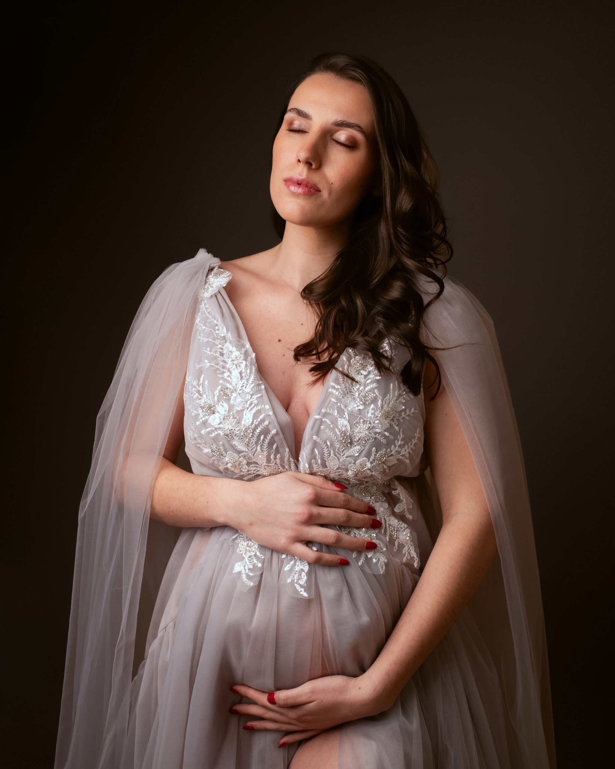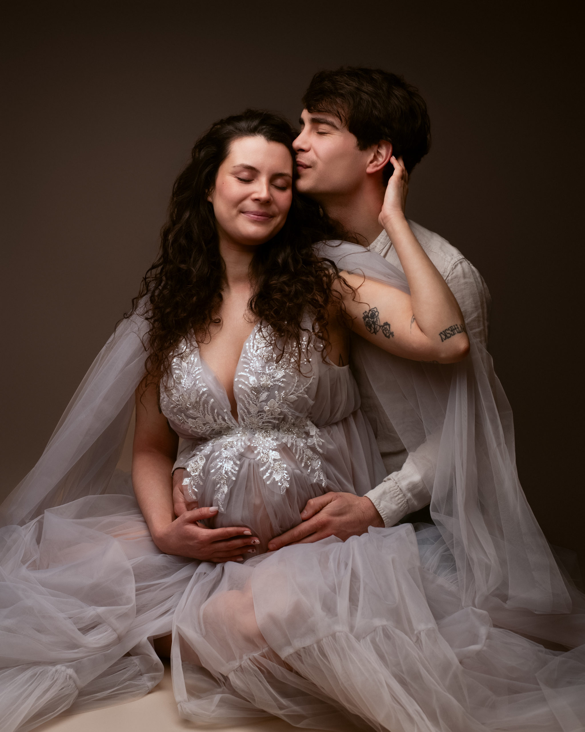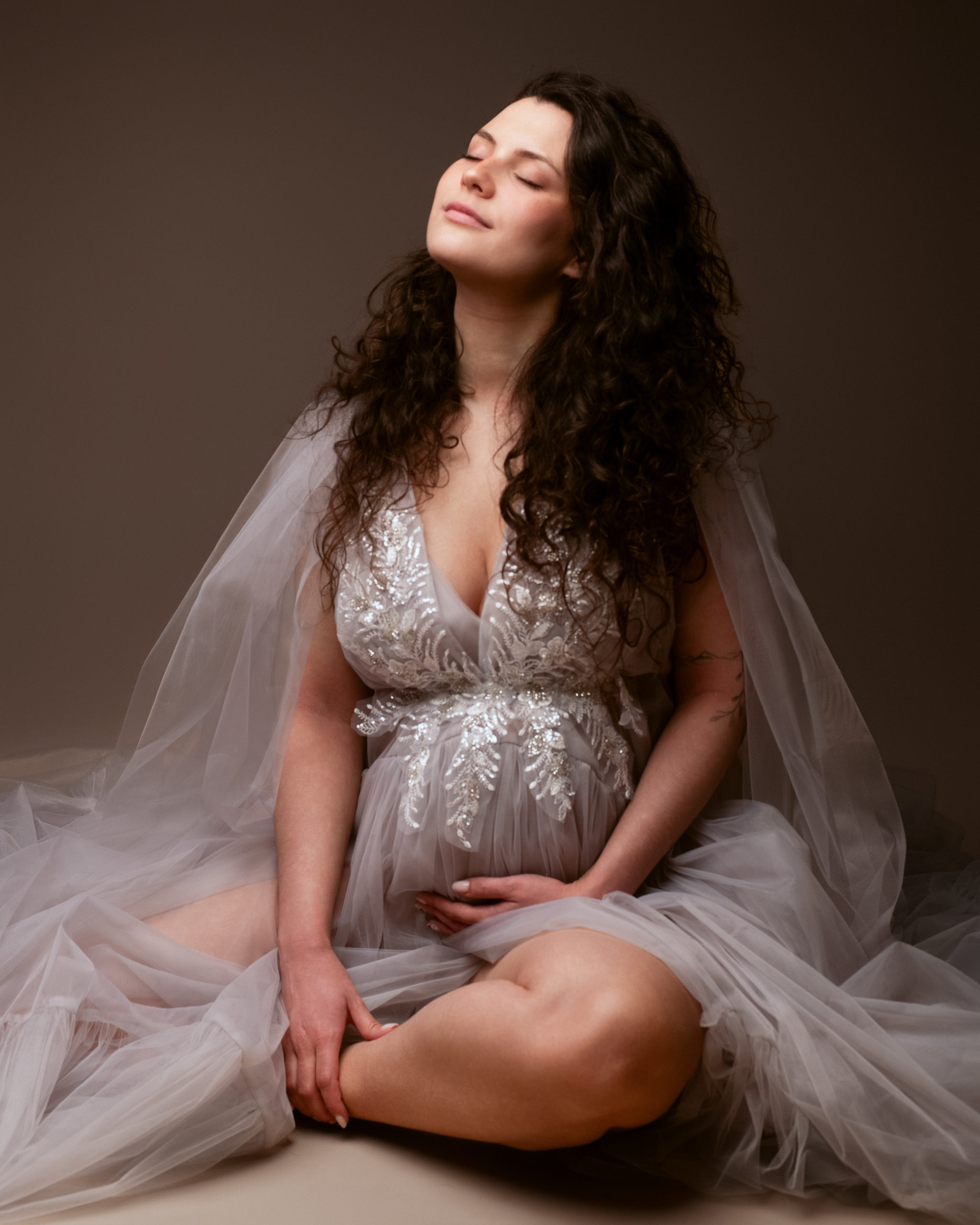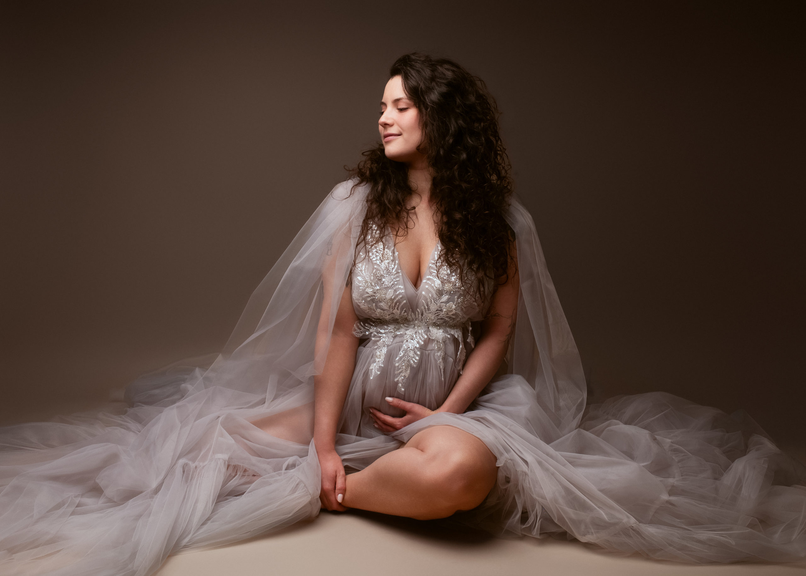 La séance peut avoir lieu en studio ou en extérieur, selon l’ambiance que vous souhaitez. Au studio, vous trouverez un dressing complet avec différentes tenues à votre disposition : robes en tulle, modèles plus simples ou plus travaillés, pour convenir à tous les goûts tout en restant fidèles à mon univers et à mon style photographique.